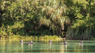 Una mujer que buceaba en una laguna de aguas de manantial se encontró cara a cara con un cocodrilo de…